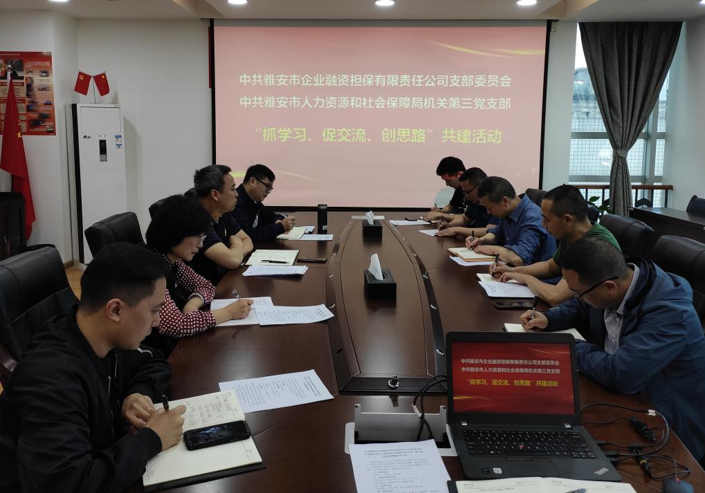 為提升黨建工作水平、促進(jìn)黨建工作融入中心工作,4月26日,市擔(dān)保公司黨支部與市人社局機(jī)關(guān)第三黨支部開展共建活動。