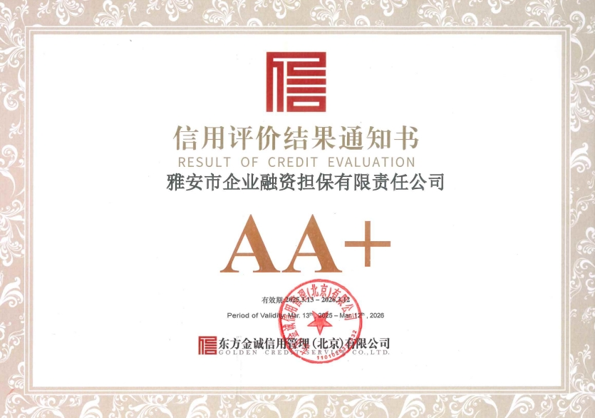日前,東方金誠信用管理(北京)有限公司在對(duì)市擔(dān)保公司的信用狀況進(jìn)行綜合分析和評(píng)估的基礎(chǔ)上,正式出具了評(píng)價(jià)報(bào)告,授予市擔(dān)保公司AA+評(píng)價(jià)等級(jí)。